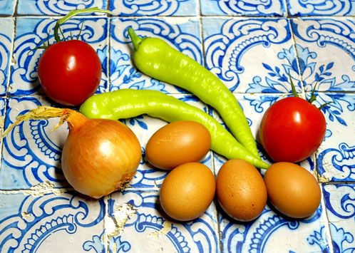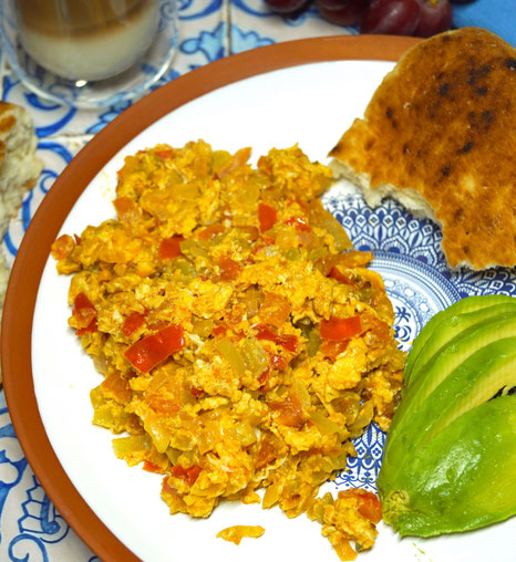 Rührei nach türkischem Rezept mit Zwiebeln, Tomaten und Paprika